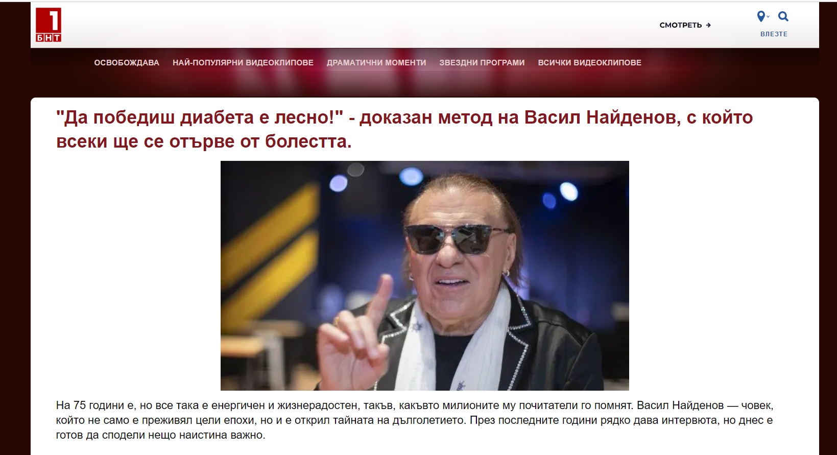 Внимание! Васил Найденов никога не е давал подобно интервю, както и БНТ нямат нищо общо – вие виждате зловредна фалшификация с популярен естраден артист и медия, на която всички вярват. |